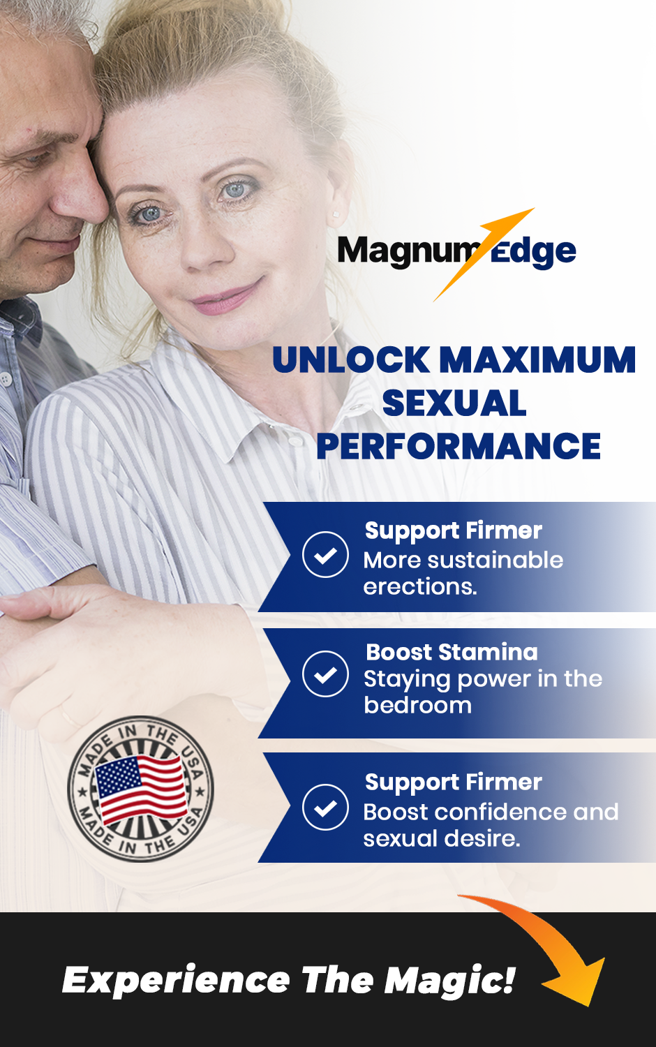 "Dealing with age-related ED was incredibly frustrating, and no pill seemed to work. When a friend recommended Magnum Edge™, I decided to give it a try—and I’m so glad I did!”